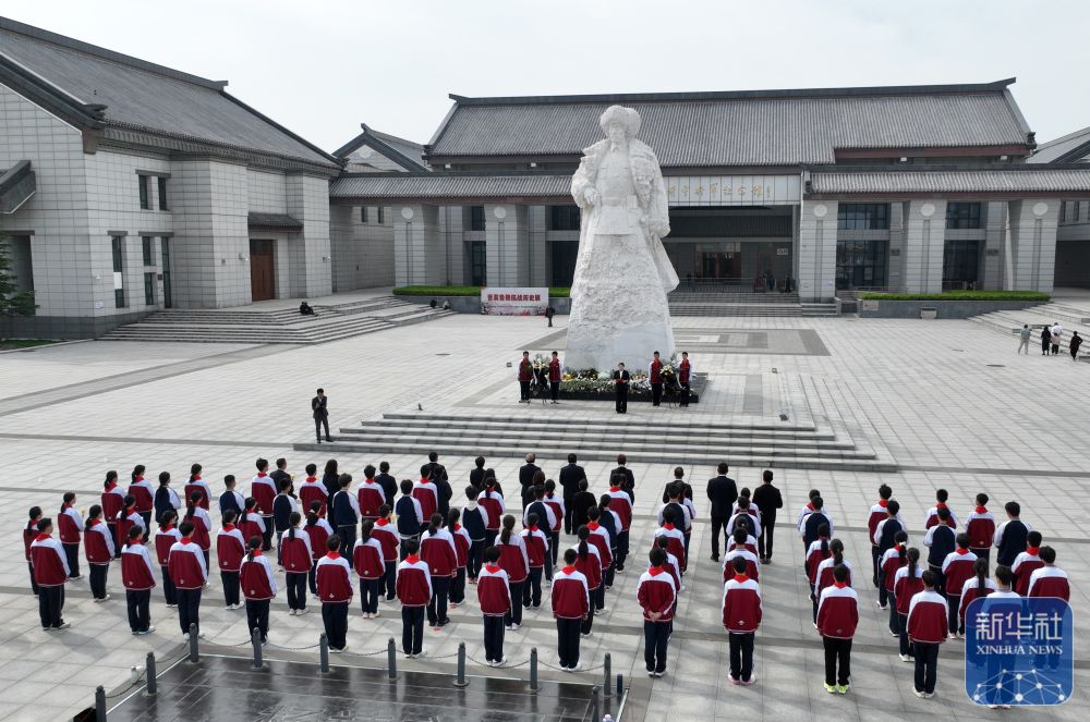 ↑ 4月2日,人们在河南省驻马店市杨靖宇将军纪念馆开展祭奠英烈活动。新华社发(弓华静摄)